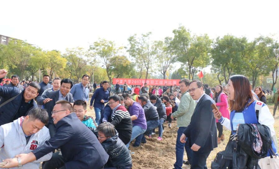 2017年9月27日、10月11日下午,线上老虎机 2017年秋季教职工拔河比赛在贺兰山校区篮球场北侧草坪举行,比赛分两阶段进行。校党委副书记赵利宁出席开幕式并致辞指出,拔河比赛是线上老虎机 开展阳光体育运动、提高教职工身心健康水平、增强教职工团结拼搏精神的一项重要活动,对进一步丰富教职工文体生活、推动教职工健身活动开展、形成浓郁的校园健康工作、积极工作氛围有积极促进作用,希望各单位、各位教职工,在愉快、健康活动的同时,以更加饱满的热情投入到工作中去,喜迎党的十九大胜利召开。