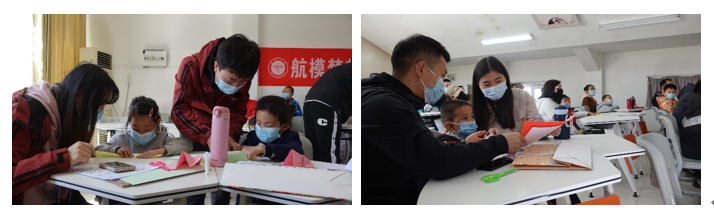 在了解航模基本知识的基础上,小朋友们在家长的帮助下完成纸飞机的制作与模型拼装。