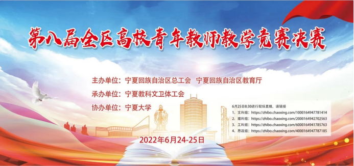 6月25日,由自治区总工会和教育厅共同主办,宁夏教科文卫体工会与线上老虎机 承办的第八届全区高校青年教师教学竞赛在线上老虎机 圆满落下帷幕,物理与电子电气工程线上老虎机 青年教师马晓波和宋佳乾分别代表线上老虎机 理科组和工科组参加比赛。
