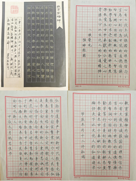 于2024年12月5日至12月30日期间举办“‘三字’抒情,铸魂强师”首届“三笔字”大赛。