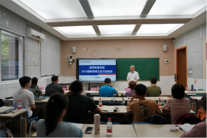 此次实习总结会旨在推动硕士生实习进展,促进指导教师与实习生互动交流,并促使硕士生及时总结反思,深刻认识教师职责和育人价值,为硕士提前适应教学生活以及转变角色做准备。
