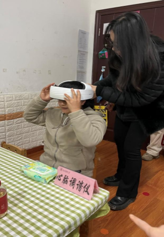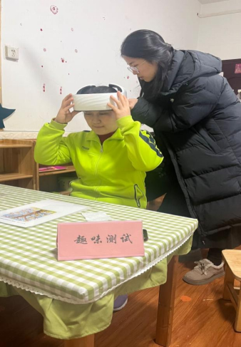 特殊教育、应用心理学专业硕士研究生代表深入幼儿班级了解学前融合教育开展情况,为幼儿教师进行心理测评。心理学专业研究生演示心理调适系统、心脑调谐仪、便携心理自助系统和VR设备等心理学仪器,并组织36名幼儿园教职工开展趣味心理测验活动和体验心理仪器。
