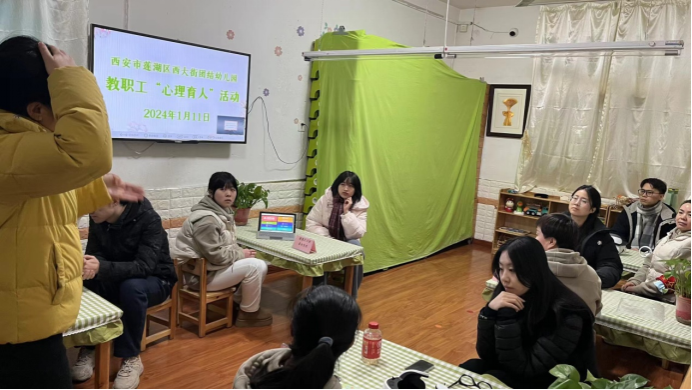 研究生组成的心理育人科普宣传队伍,前往西安市莲湖区西大街团结幼儿园开展教职工“心理育人”活动。