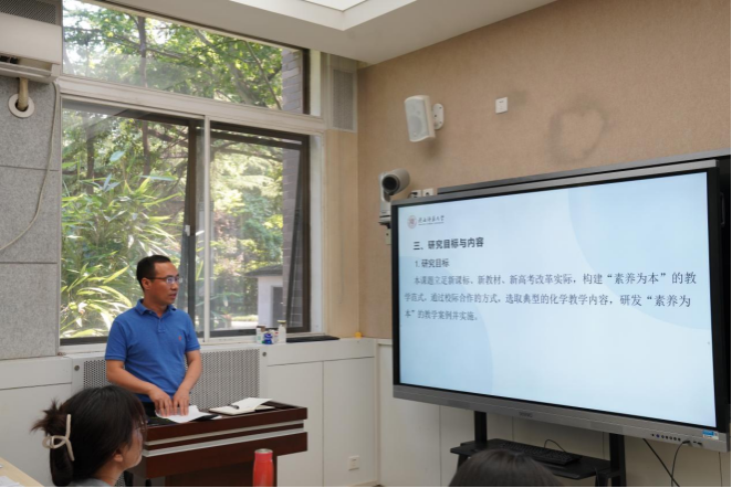 开题报告会上,毛哲茹、张庆和魏玮分别就《双减背景下教师负担的消减路径研究》《素养为本的高中化学教学设计与实施研究》《教师教育者队伍高质量专业发展路径探究基于陕西师范类院校二十大视域下的优师计划研究》等课题,从研究背景和意义、研究现状、研究目标、研究内容、研究方法、创新点以及预期成果等八个方面进行现场汇报。
