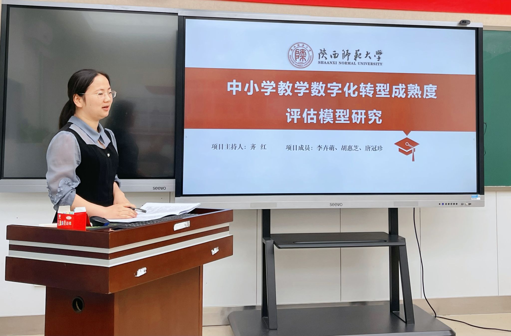 教学数字化转型水平测评指标体系构建与应用》《生成式人工智能赋能师范生智能教育素养与胜任力培育》选题进行开题汇报。内容涵盖选题背景与意义、核心概念界定、研究内容与问题、研究思路与方法、预期成果即及规划等关键环节,既关注教育理论的深入探讨,也兼顾现实问题的实践回应。