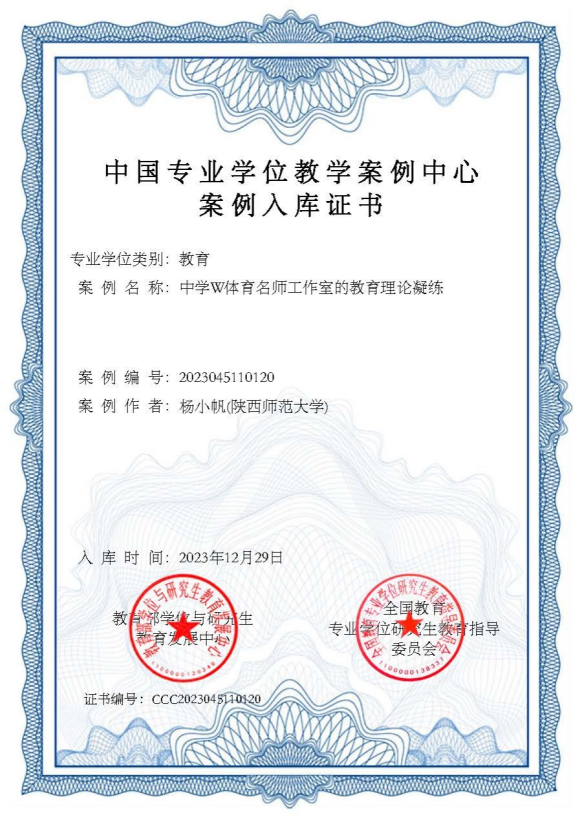 教育博士生导师杨小帆教授申报的1篇教育专业学位教学案例入选中国专业学位教学案例中心案例库。