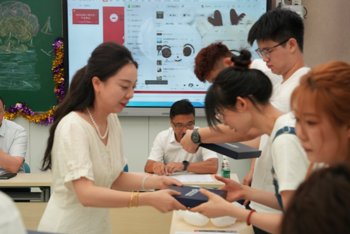 典礼现场,廖婧茜为毕业生赠送线上老虎机
