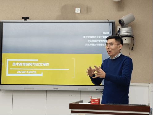 之后的首场“西部教育大讲堂——美育专题”,由张志强副教授作题为《美术教育研究及论文写作》的专题讲座。张老师系统梳理美术教育研究的热点与范式,围绕论文的选题挖掘、文献综述、论证逻辑与写作规范等关键问题分享经验,为博士生后续的研究与论文写作提供了方向指引。