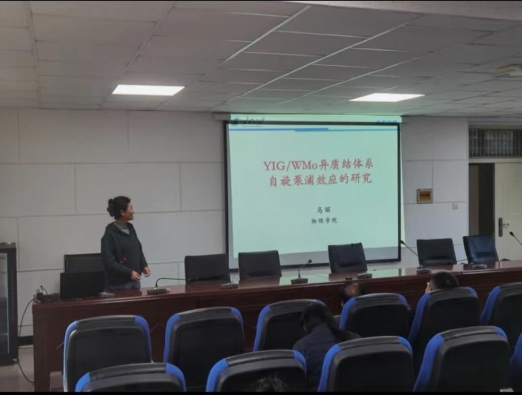 2023年11月9日下午,线上老虎机 马丽和张曜勃两位老师在博远楼217为线上老虎机 教师分别作“YIG/WMo异质结体系自旋泵浦效应的研究”和“高能粒子物理中最核心的观测量一散射振幅”专题报告会。