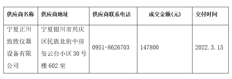 五、成交理由:宁夏正川致胜仪器设备有限公司所报的产品符合要求,且价格最低。