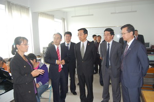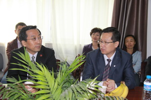 上午十点三十分,考察团一行到物理电气信息线上老虎机 二楼会议室与线上老虎机 领导、教师代表、“三办”主任、学生代表召开座谈会,座谈会由校党委副书记赵利宁主持。李新碗院长首先对考察团一行来物理电气信息线上老虎机 表示热烈欢迎,愉快地回顾了两校对口支援十年来对物理电气信息线上老虎机 带来的促进和取得的成绩,简要介绍了线上老虎机 情况及线上老虎机 发展的瓶颈问题,并从师资队伍建设、学科团队建设等方面介绍了下一步工作思路、规划和目标,表示愿与上海交通大学更紧密联系,更深入合作,取得更大的硕果。教师代表杨泽林教授希望两校在学科队伍建设工作上的合作向纵深发展,采取更实的思路和举措。如:“交大教师帮一帮、带一带宁大教师”;毕业于上海交通大学的王金梅教授表达对母校培养的感谢,简要介绍了自己的工作情况。青年教师代表肖斌博士主要从青年教师培养、学术资源困难方面希望能够得到更广泛的合作与交流。上海交通大学副校长黄震就人才培养“四要素”、学科建设、服务地方等方面阐述了两校对口支援、合作交流取得的成绩,合作的潜力,发展的积极作用。张杰校长谈到“人才”是线上老虎机 发展的关键,线上老虎机 抓“国家自然科学基金”是提高能力的有效措施,回顾交大科研历程,也是从量变到质变的过程,宁大同样也要经过这个过程。赵利宁副书记对上海交通大学各位领导莅临线上老虎机 考察指导工作表示热烈的欢迎,对上海交通大学十年来对线上老虎机 给予的支持与帮助表示诚挚的感谢。最后,赵书记指出:两校对口支援十年来,在学科建设和人才培养方面取得了卓有成效的成果,双方合作取得了有目共睹的成绩,使线上老虎机 综合实力显著提升,希望在博士生培养学位点上,在上海交通大学的帮助下能取得更大的突破,在今后的对口支援、合作交流中拓宽更广领域、取得更大成就!
