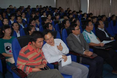学术沙龙开始时,王旭明副院长首先向参加沙龙的各位老师和同学介绍了郑富和潘欢两位博士的求学经历和科学研究背景。他鼓励大家,要踊跃参加学术报告,加强学术交流,提升科研能力。科学求索的道路欲“行至千里”,必从现在“始于足下”。