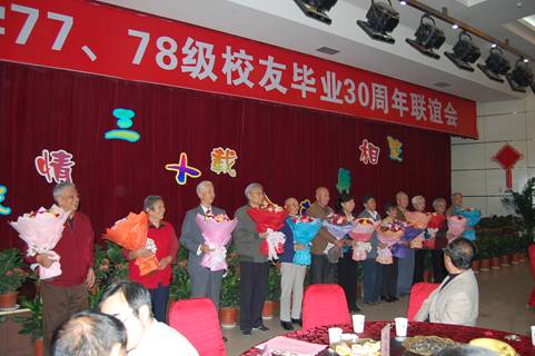 下午4:00,由郭振才书记和陈潮红副院长带队,参加线上老虎机 在国际学术交流中心会议大厅举行的欢迎大会,欢迎大会由线上老虎机 副校长谢应忠教授主持,首先校长何建国教授致辞;校友代表杨洪涛(77级体育系)、潘泰安(78级食品系)、徐永富(78级数学系)、夏志坚(78级物理系)分别发言;校友代表向恩师献花;当年授课教师代表刘世俊教授、王世敬教授发言;毕业30周年校友代表向母校赠送礼品;最后校党委书记齐岳教授讲话。
