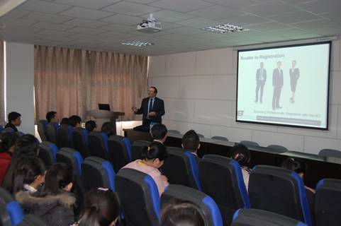 2012年10月21日下午,英国工程技术学会皇家注册工程师、资深会士,现任IET职业发展部门经理Dick Bacon先生在物理电气信息线上老虎机 学术报告厅217室,为线上老虎机 相关
