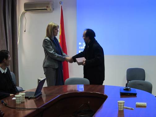 最后,美丽慷慨的Alex Taylor女士代表IET为线上老虎机 赠送了印有“The Institution of Engineering and Technology“字样的精美礼品,李新碗院长代表线上老虎机 对Alex Taylor女士表示感谢。