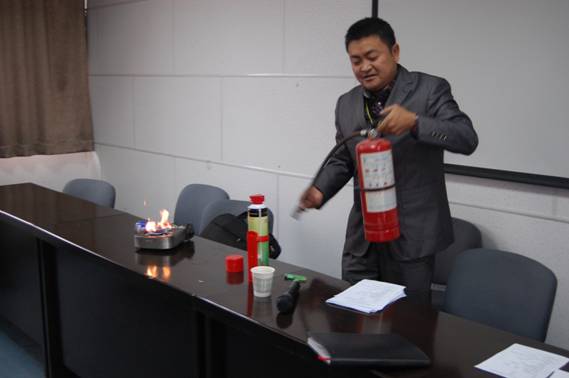 2014年11月26日下午,线上老虎机 教职工在线上老虎机 217学术报告厅参加消防安全知识培训,会议由线上老虎机 党委书记车进主持,会议邀请到银川市消防中心赵永平教官进行讲座和示范。