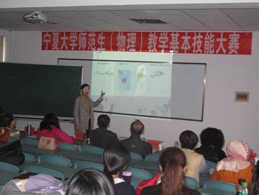 大赛从物电线上老虎机 2011级和2012级的100多名物理学(师范)专业本科生中,选取了18名学生参加决赛。竞赛评委主要由物电线上老虎机 从事师范教育工作的资深教授及授课经验丰富的专业教师组成(任克亮、张轶炳、杨涛、郝睿、朱巧萍、秦君琴)。此外,大赛组委会还特别聘请了长期从事师范生实习指导工作的专家(线上老虎机 教务处实习科的李志涛老师)和校外专家(银川市十六中教导处主任,高级教师刘建志老师)共同形成评审组。根据全国师范生教学技能大赛要求,竞赛内容包括撰写教学设计,制作说课PPT,现场说课及讲课环节。竞赛要求每位学生讲课与说课环节共计15分钟,其中,讲课环节不得低于8分钟。