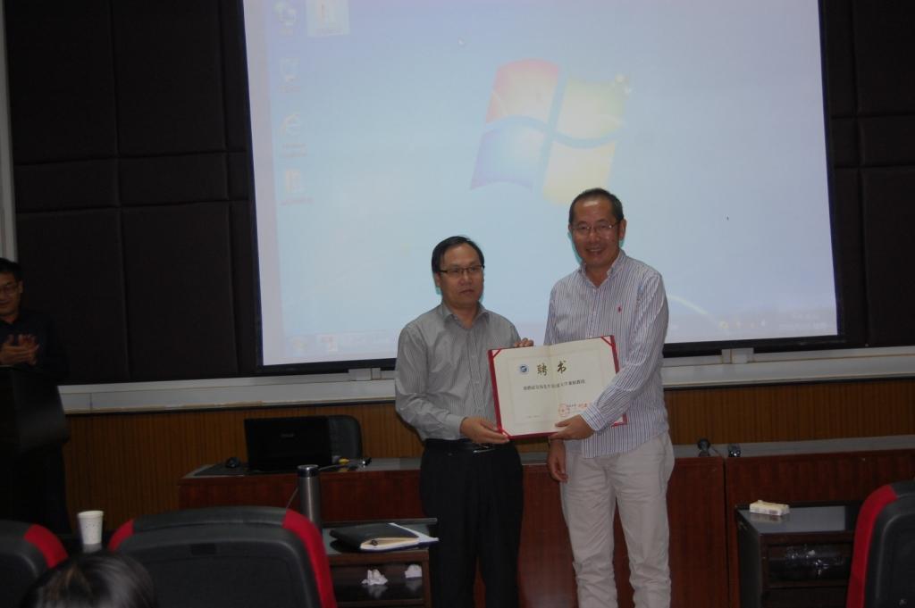 为了加强学科建设,增强师资队伍,提高人才培养质量,物理与电子电气工程线上老虎机 院长王旭明代表线上老虎机 向吴伟先生颁发了兼职教授聘任书。