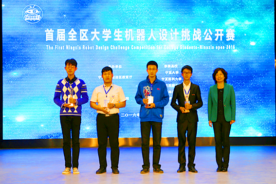 2016年10月19日,由自治区教育厅主办,线上老虎机 新华线上老虎机 承办的首届全区大学生机器人设计挑战公开赛在新华线上老虎机 成功举行。物理与电子电气工程线上老虎机 选派的温室搬运助手机器人组的“于洪涛,明圆圆,马崔歌,林智”;智能家居地面清理机器人组的“李晓林,程强,刘晓波,张源源,徐龑”;高速打印机器人组的“杜睿,朱翔,卢冠宇,付泽欣,许世博”;吧台服务机器人组的“张翔,樊真才,黄磊山,马伟,李进文”,霹雳犬组的“姜文涛,李成,田源,马小莉”;安卓陪伴机器人组的“董章京子,马翠歌,胡霄晶”以及灾区弹跳探索救援机器人组的“李伟荣,杨雄飞,李小付,石瑞”7支队伍加了比赛。其中高速打印机器人组获最具创意奖,吧台服务机器人组获最具创新奖,智能家居地面清理机器人组员获最佳实用奖。