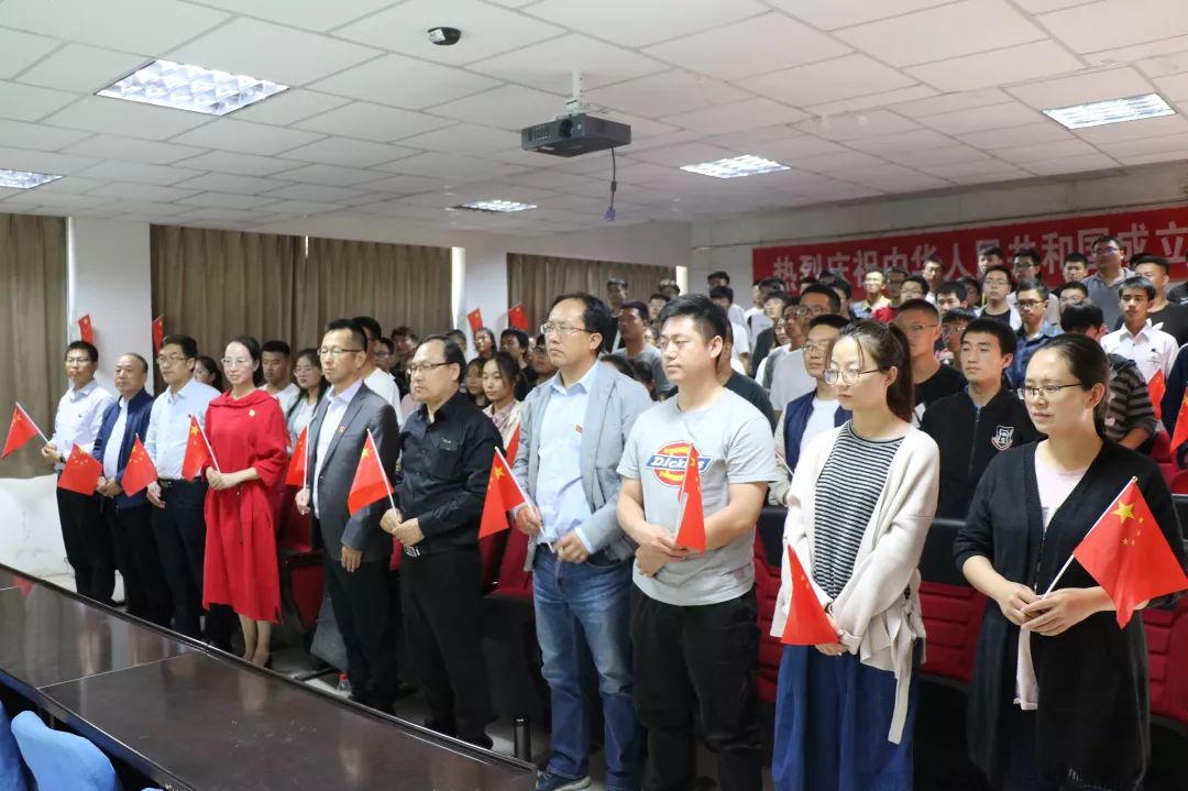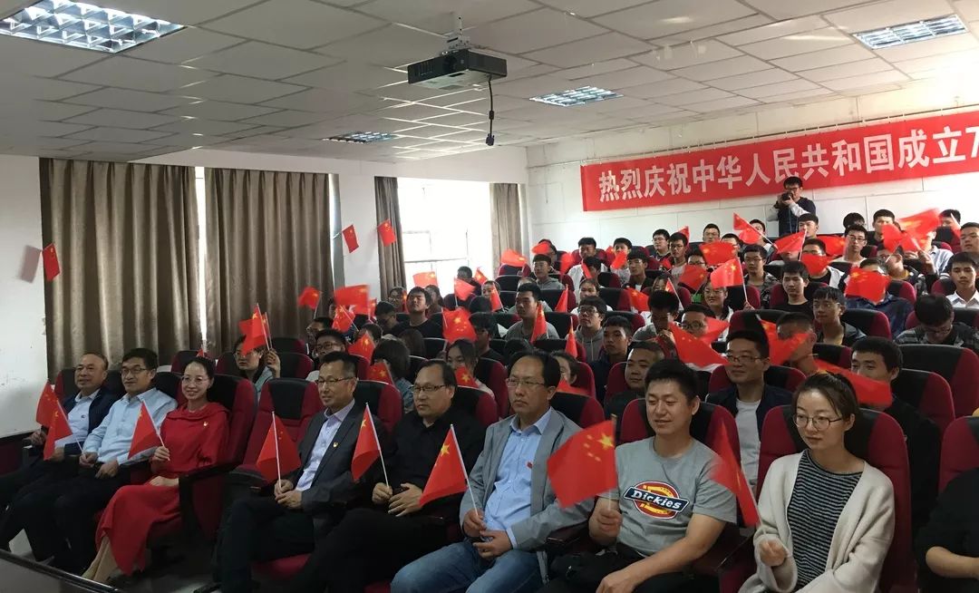 物电线上老虎机 组织观看庆祝中华人民共和国成立70周年阅兵仪式“壮丽七十年,奋进新时代”。10月1日上午,庆祝中华人民共和国成立70周年阅兵仪式在北京天安门广场隆重举行。为营造共享伟大荣光、共铸复兴伟业的浓厚爱国氛围,引导师生在直播中接受爱国主义教育,激发师生爱国、爱党、爱社会主义的真挚情感。线上老虎机 党委书记王志霄,院长王旭明,党委副书记马玉玲,副院长任克亮、郭中华,院办巨建楼老师及学生工作办公室、教科办部分教师与假期留宿学生齐聚线上老虎机 319会议室集体观看国庆直播,为祖国庆生。