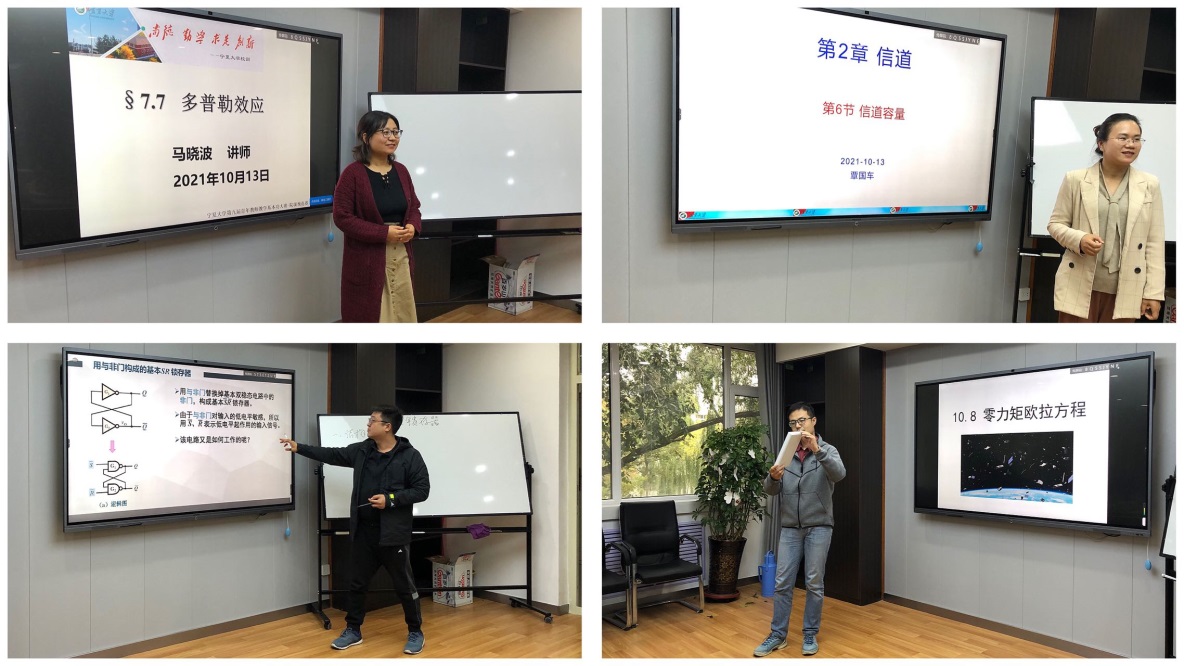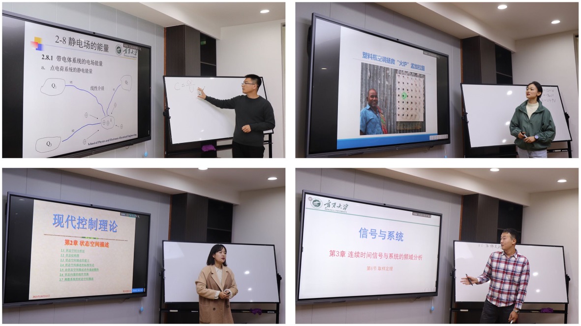 本次比赛共有来自物理系、信息工程系和电气工程与自动化系的8名青年教师参加,评委由线上老虎机 教学指导委员会主任及委员构成。比赛分为现场讲课、评委打分及评委点评三个环节,重点考察青年教师的教学设计能力、授课基本功底及对教学方法、教学手段和教学理念的运用。