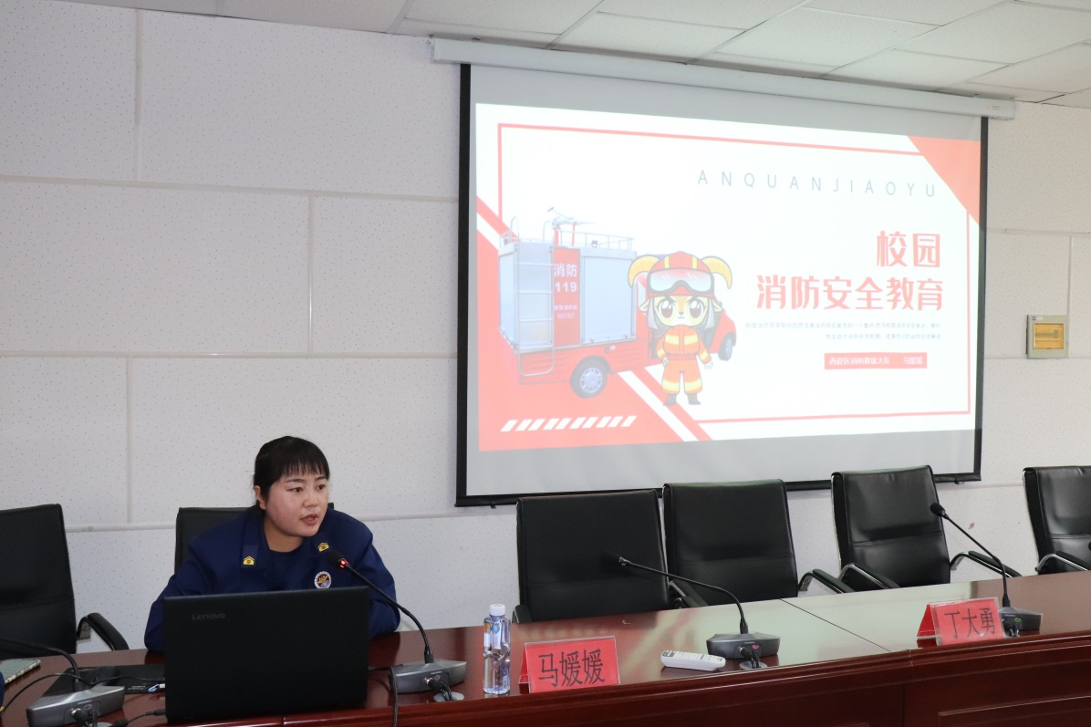 马媛媛教官以校园消防安全教育为主题,通过PPT生动详细地讲解了消防安全知识及紧急疏散逃生注意事项,并利用大量实例真实讲述在地震、火灾、水灾等灾难中如何求生。培训结束后,随着警报声响起,参训人员迅速有序疏散并在短时间内撤离到指定地点。