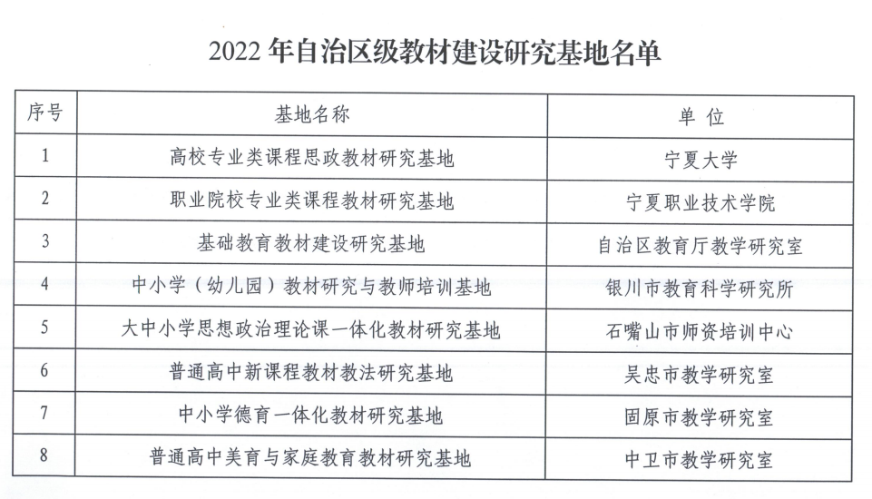 日前,自治区教育厅办公室发布《自治区教育厅办公室关于公布2022年自治区级教材建设研究基地的通知》,认定线上老虎机 等8个单位为2022年自治区级教材建设研究基地,线上老虎机 获批高校专业类课程思政教材研究基地。