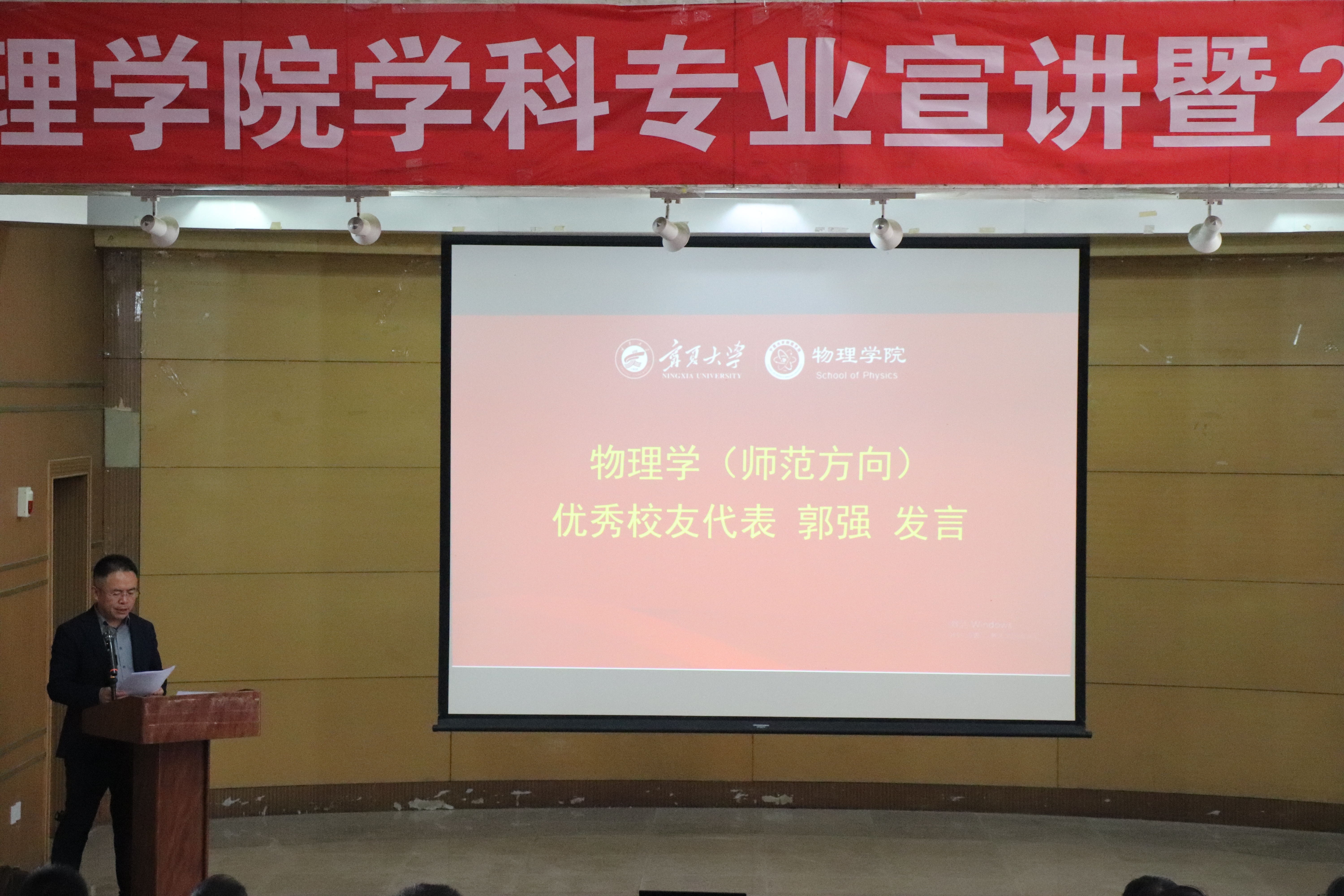 物理学(师范方向)优秀校友代表、宁夏银川一中党委委员、副校长郭强,物理学(基础拔尖)优秀校友代表、中国科线上老虎机 理论物理研究所助理研究员谢琼、物理学(材料物理)优秀校友代表、广东一纳科技有限公司总经理王建兴受邀发言。他们通过分享自身的成长经历,展现他们在各行各业取得的业绩,激励和引导每一位线上老虎机 学子传承物理人的精神,在奋斗中练就过硬本领、勇于创新创造、锤炼高尚品格、追逐青春理想,以青春奋斗之我,成就精彩人生。