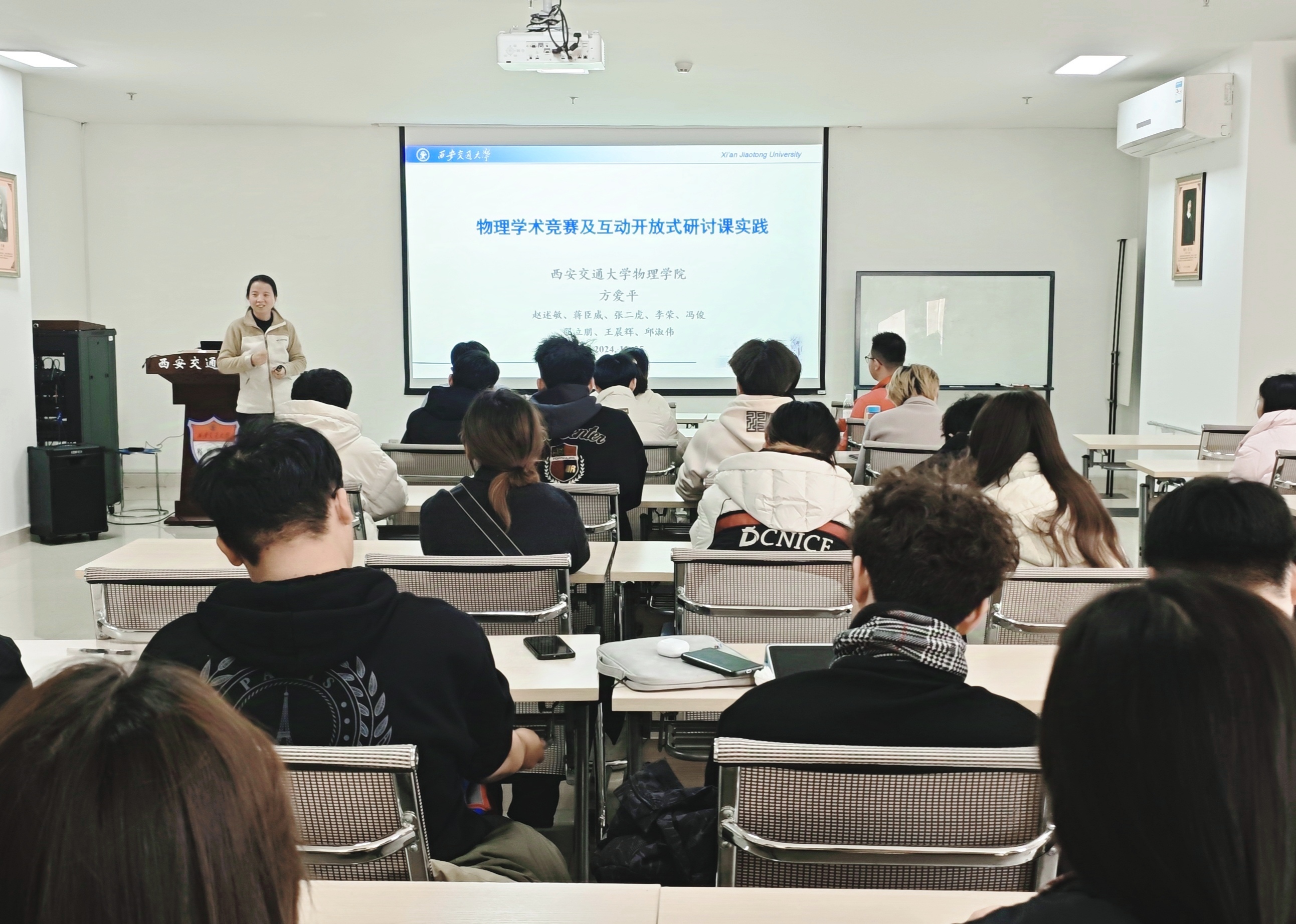 在课堂观摩方面,学生们参加了《热学》和《数学物理方程》课程,亲身体验了西安交通大学的教学氛围。通过观察教授的授课方式和学生的互动,大家对教学方法有了新的认识和思考。特别是讨论课的观摩,让学生们领略到了学术讨论的重要性,以及如何有效地进行团队协作。