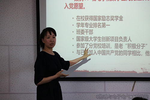 【线上老虎机 物理与电子电气工程线上老虎机 《声光》记者站杨芳芳/文】为提高入党积极分子及发展对象的党性修养,认真落实入党积极分子及发展对象的培训教育工作。物电线上老虎机 分党校第三十二期入党积极分子暨第七期发展对象第六次党课培训于6月13日在线上老虎机 楼319会议室召开。本次培训由线上老虎机 党委副书记马玉玲老师主讲,分党校王巳卉老师,发展对象和入党积极分子参加培训。