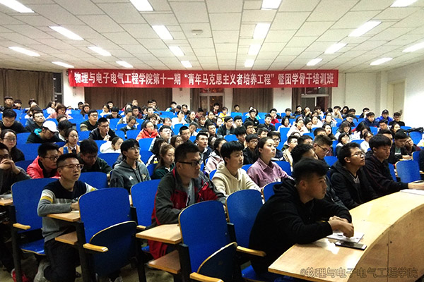 11月19日晚上,物电线上老虎机 于怀远一教231教室举行物理与电子电气工程线上老虎机 分党校第三十三期入党积极分子暨第八期发展对象培训班、第十一期“青年马克思主义者培养工程”暨团学骨干培训班培训活动,本次活动培训班全体学员观看纪录片《榜样3》,活动由辅导员王巳卉老师主持。