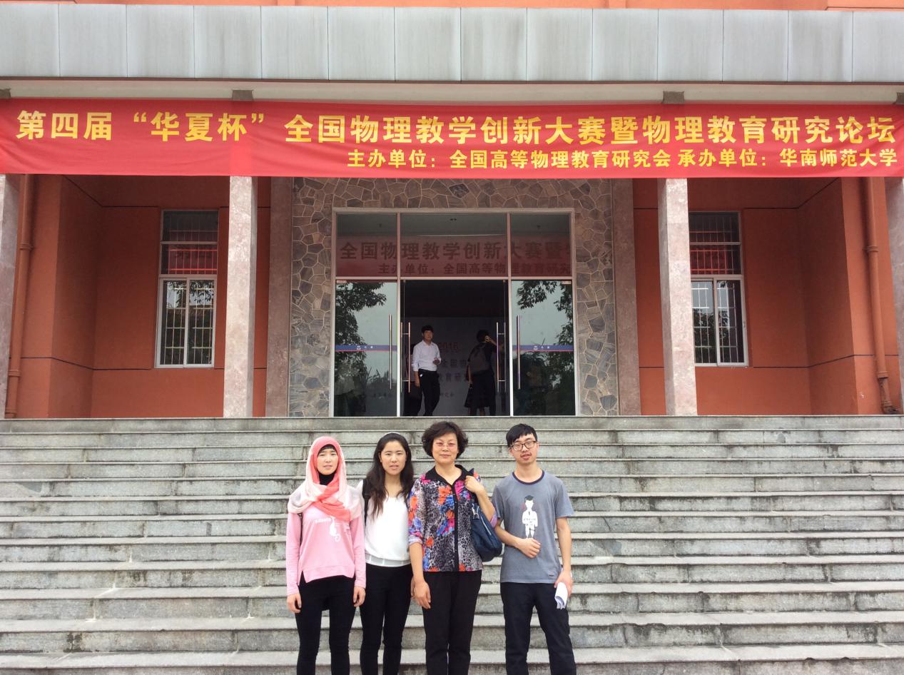 第四届“华夏杯”全国物理教学创新大赛暨物理教育研究论坛在华南师范大学进行,本次大赛选手包括来自全国50多所高校的92名本科生、85名研究生及来自全国各地的43名中学教师,大赛分为教学技能大赛和论文大赛,其中教学技能大赛包括了“讲课、教学设计及现场提问”三个环节,线上老虎机 派出2014级物理师范本科专业的杜林旭、杨小梅、张菊参加了本科组的教学技能比赛,其中杜林旭、杨小梅获得一等奖,张菊获得二等奖。