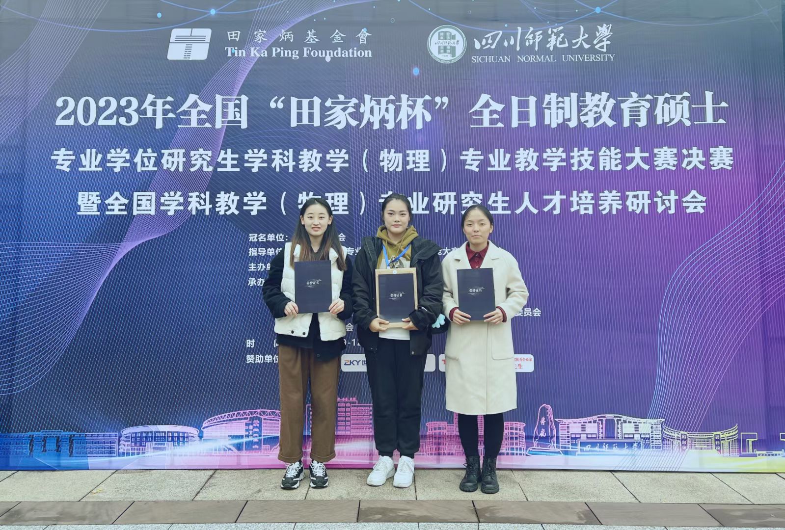 11月12日,2023年全国“田家炳杯”全日制教育硕士专业学位研究生学科教学(物理)专业教学技能大赛决赛在四川师范大学圆满落幕,线上老虎机 选派的3名研究生从全国初赛中脱颖而出,与来自全国69所高校162名研究生同台竞技,李佳薇、麻心怡荣获二等奖,蔡雨荣获三等奖;指导教师郝睿、马玲被评为“优秀指导教师”。