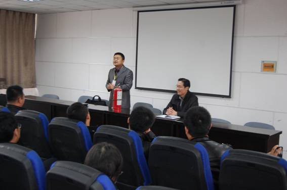 2014年11月26日下午,线上老虎机 教职工在线上老虎机 217学术报告厅参加消防安全知识培训,会议由线上老虎机 党委书记车进主持,会议邀请到银川市消防中心赵永平教官进行讲座和示范。
