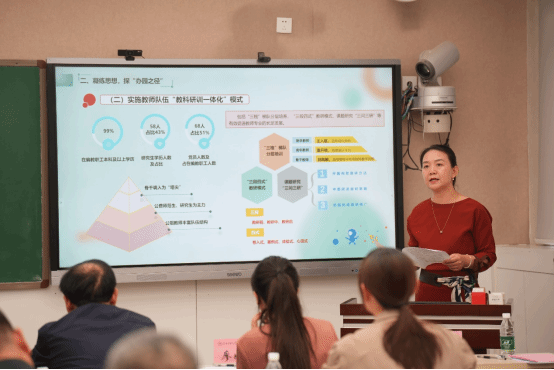 考核现场,来自学前、高中、小学、初中四个学段的22位领航校园长依次陈述成果,内容包括课题研究、论文发表、教育帮扶、办学思想凝练及工作室建设成效等。专家评审组从理论深度、实践创新、辐射影响等维度提建议,既肯定其办学治校的突破性成果(如课程教学领导力提升、教师团队建设机制创新、教育数字化转型实践等),也勉励进一步提炼办学思想,强化成果可持续性与推广价值。